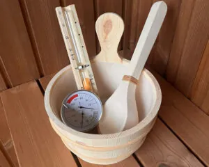 - hlubší uvolnění a relaxace – dřevěný džber a naběračka usnadňují tvorbu uklidňující páry, která zklidňuje smysly a pomáhá uvolnit napjaté svaly. Přidáním oblíbených esenciálních olejů navodíte v sauně atmosféru jako v opravdovém wellnessu;