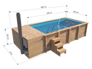 Dřevěný bazén 4,8 x 2,3 m s kamny a polypropylenovou vložkou