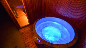 Sound system in the sauna – Built-in speaker system resistant to high temperatures and moisture, ensuring clear sound inside the cabin.