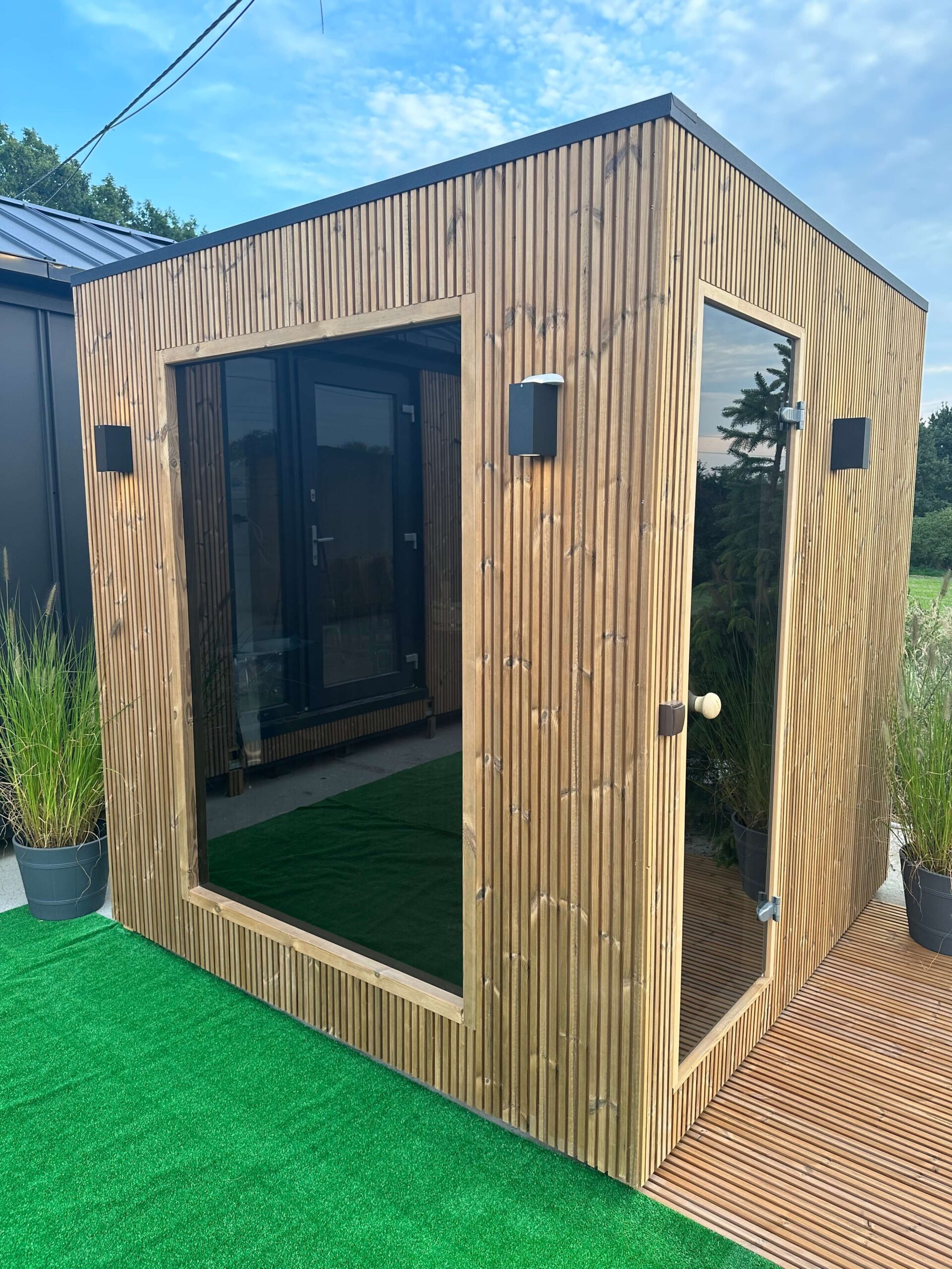- Interior finished with 19mm thermo wood paneling