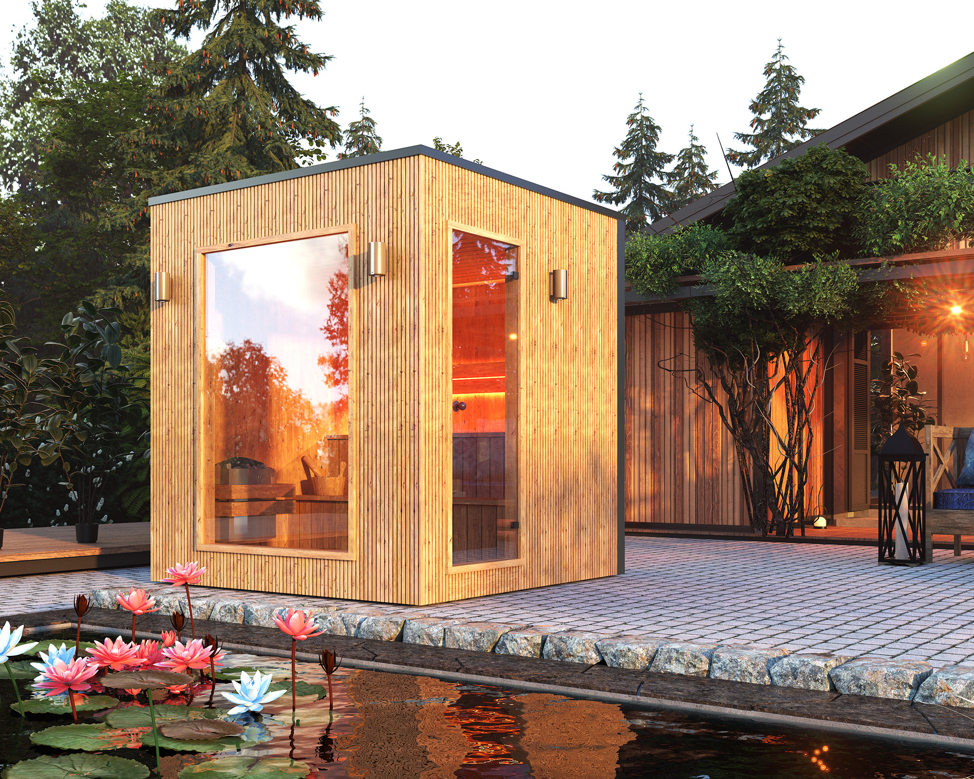 Our saunas made of Thermo Wood, with enhanced durability, not only serve as a decoration for gardens or terraces but also seamlessly fit into rental cottage designs. Designed with durability and attractiveness in mind, they are perfect as a unique attraction for accommodation facilities. Increasingly, our saunas are also being used to create exclusive spa areas. It is also popular to add a sauna to the amenities of every rental cottage. This is not only a practical solution but also a great investment in the comfort of users and the attractiveness of the facility’s offerings