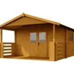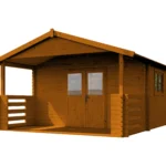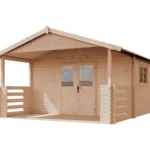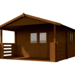 The dimensions of the house are 4 x 5 m, including 4 x 3 m interior and 4 x 2 m terrace. The structure is made of four-sided planed and sanded boards. The roof is gable boarded and the terrace has handrails. Double-leaf front door with a handle and a lock and a single pane. Double-leaf window with glass thickness of 3mm. The thickness of the boards on the floor, terrace and roof is 18 mm, and in the walls 34 mm.
