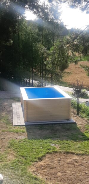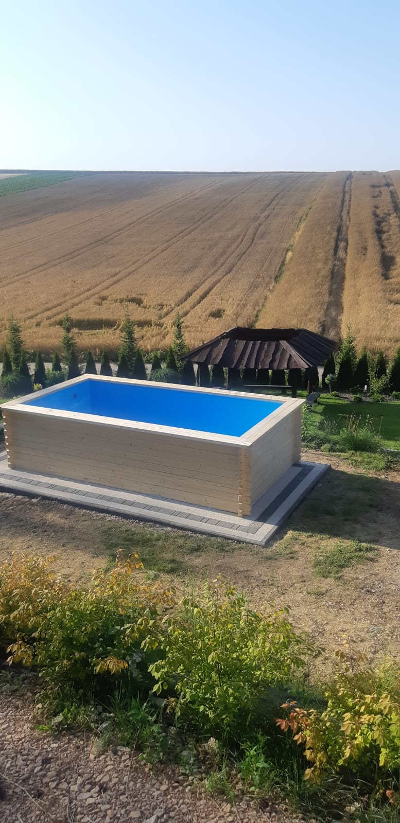 You also can equip an external wood-burning stove or a 4 kW heat pump. Remember to prepare a solid base for the pool, e.g. of cobblestones, as well as impregnate the wooden casing with varnish in the preferred color. Delivery of the already assembled product to your home/garden/company.
