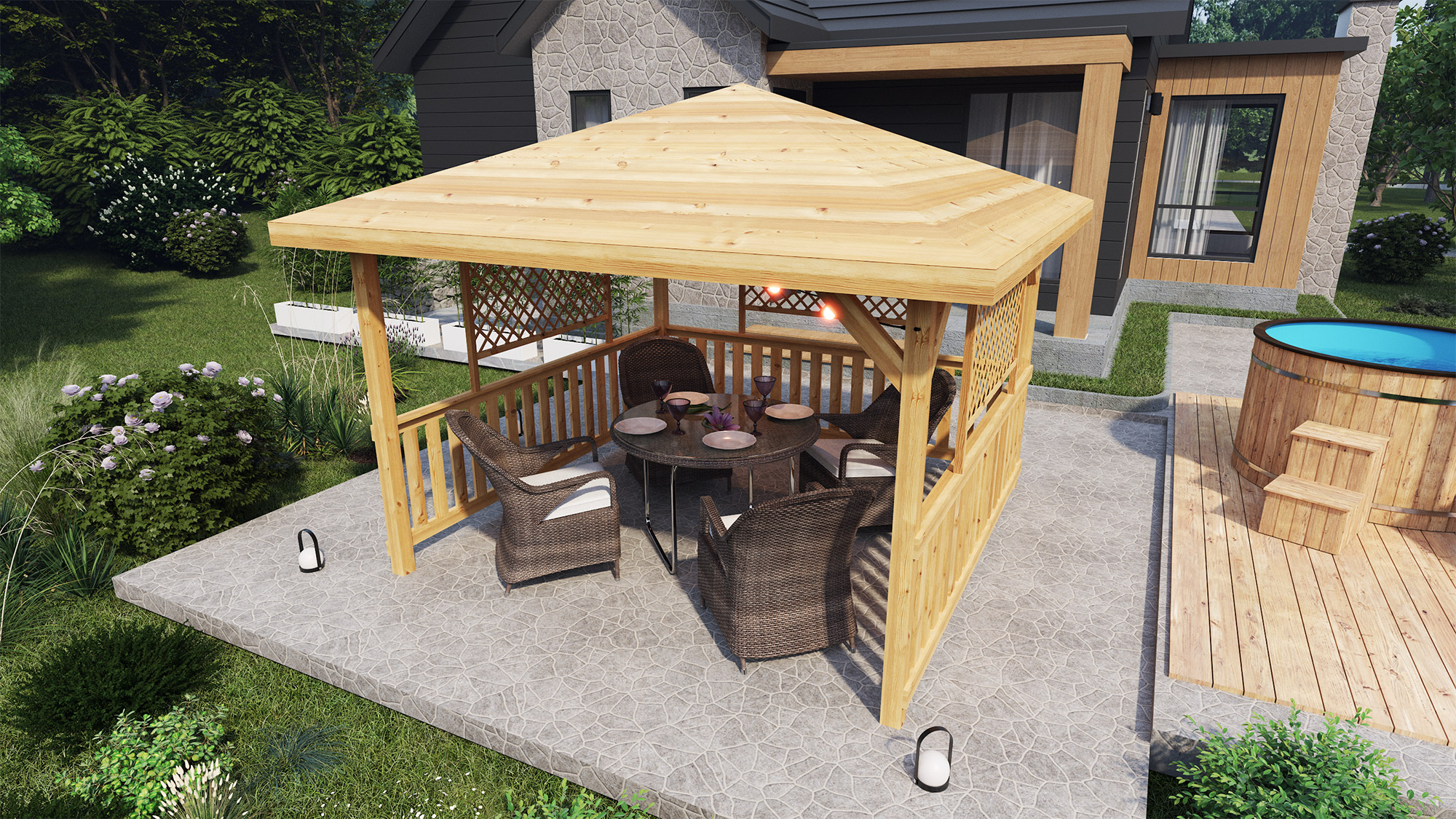 ❮ A&M / Produkty / Altany drewniane / Altana I – 300 x 300 cm