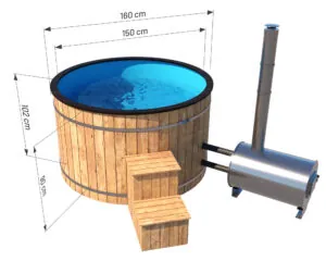 ❮ A&M / Produkty / Balie drewniane / Balia 160 cm – z wkładem, z piecem zewnętrznym