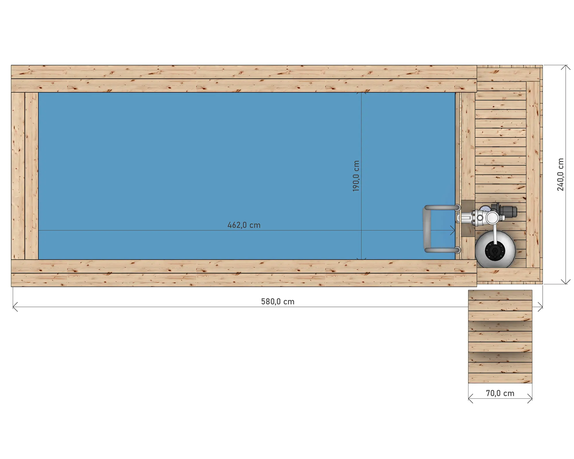 ❮ A&M / Produkty / Baseny drewniane / Basen Drewniany z wkładem polipropylenowym 580cm x 240cm