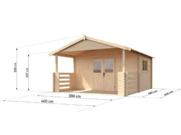 - Rozmiar zewnętrzny domku z tarasem: 500cm x 790cm