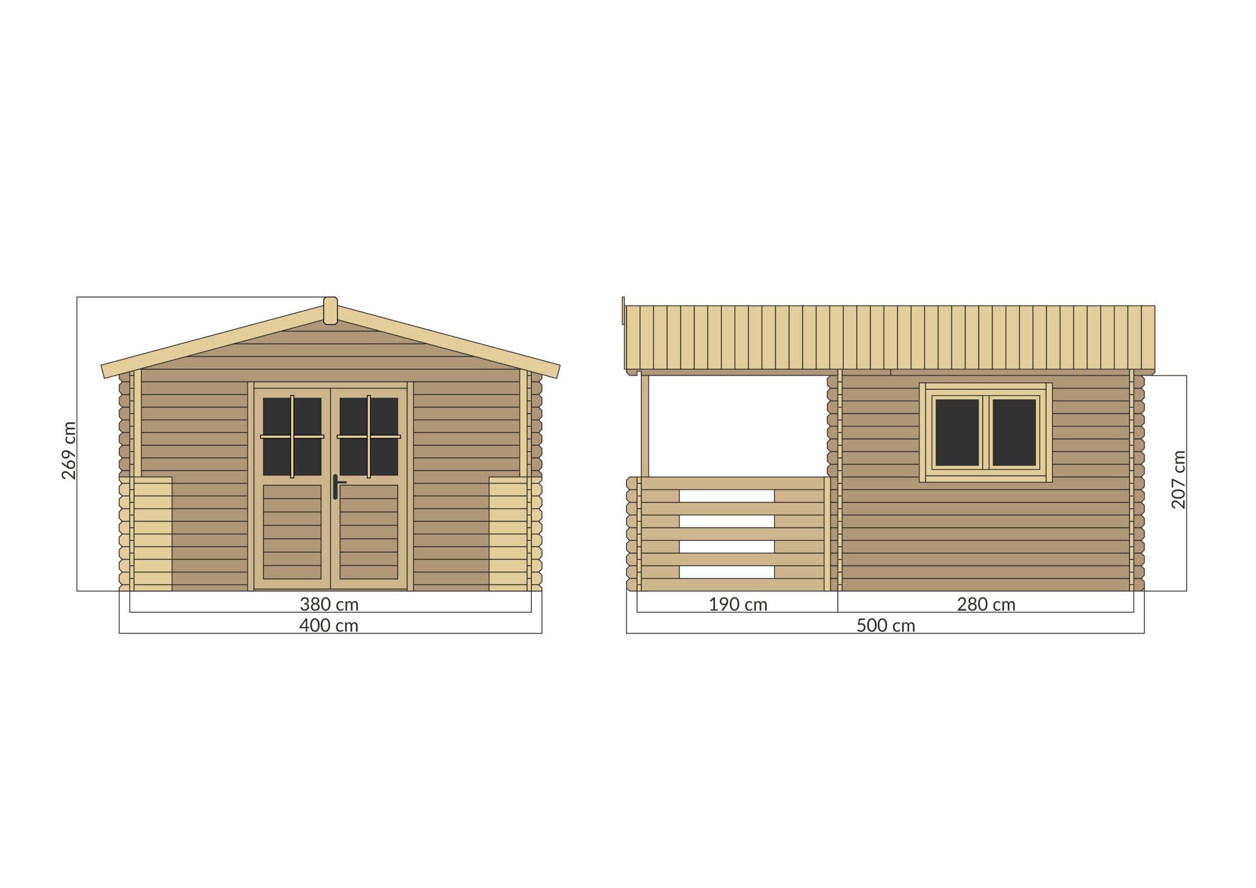 - Wymiar domku: 4m x 3m