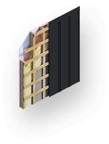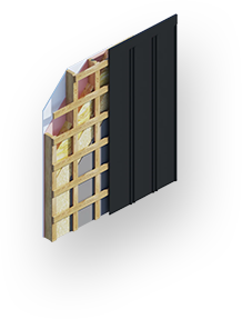 • elewacja z blachy powlekanej w kolorze grafitowym ze wstawkami z Thermodrewna