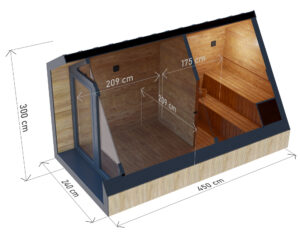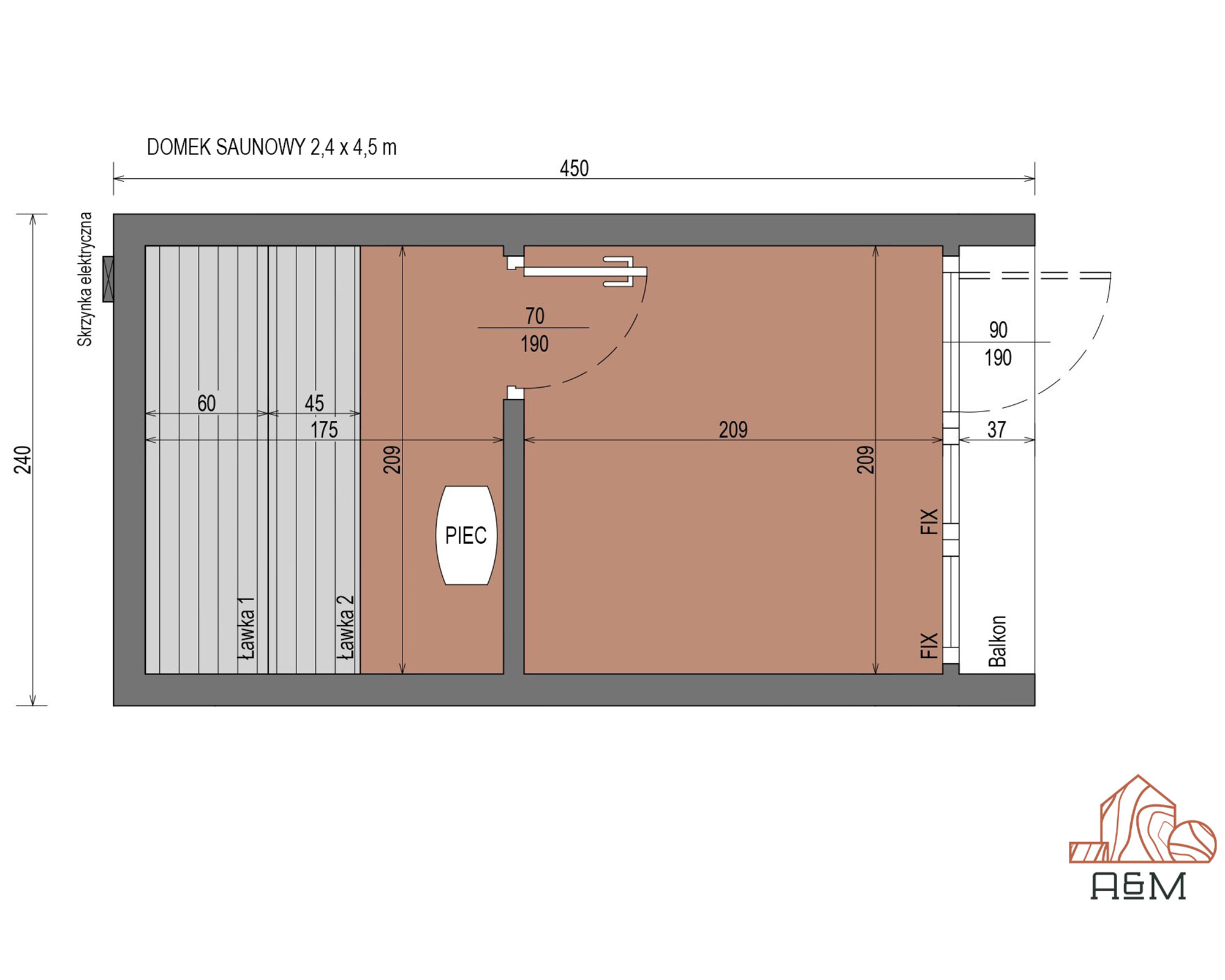 ❮ A&M / Produkty / Sauny drewniane / Sauny Premium / Domek Saunowy Premium 450 x 240 cm