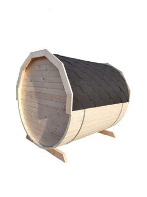 Sauna 2 m bez przedsionka to unikalny produkt, który został wykonany w sposób tradycyjny, czyli ręcznie przy użyciu naturalnego drewna świerkowego. Konstrukcja sauny jest bardzo stabilna za sprawą dwóch mocnych podstaw – całość trzymają obejmy spinające. Deski użyte do budowy mają grubość 45 mm, zaś drewniane drzwi wejściowe posiadają szybę ze szkła hartowanego. Wewnątrz sauny znajduje się specjalna podłoga oraz ławeczki – wszystko z drewna. Pokrycie dachowe to gont bitumiczny w kolorze szarym, dzięki czemu doskonale zabezpieczy konstrukcję przed deszczem i śniegiem. Wymiary sauny są kompaktowe, tj. 2 m dł. i 2 m wys., co pozwala ustawić w dowolnym miejscu ogrodu czy działki na twardym, wypoziomowanym podłożu. Możesz zamówić impregnację lakierem w 1 z 10 kolorów, a do tego dokupić piec elektryczny lub na drewno, a nawet przeszklenie tylnej ściany. Dostawa sauny odbywa się w całości do domu/firmy.