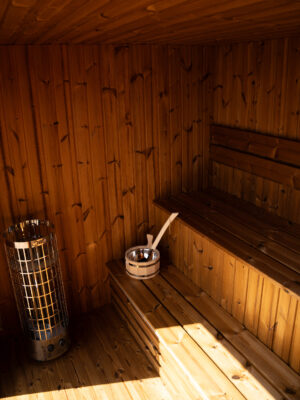Sauna ogrodowa to świetny pomysł na urozmaicenie swojego ogrodu. Dodając do niego nieco luksusu, tworzymy idealną oazę odpoczynku. Domek ten może z łatwością zagwarantować niezapomniane wrażenia każdego dnia. Został on wykonany przez zespół prawdziwych profesjonalistów oraz pasjonatów, którzy zadbali o każdy detal, co sprawia, że Domek Saunowy 5 x 2,2m – Sauna to ogrom pewnych i innowacyjnych rozwiązań. Na przykład między deskami z drewna świerkowego znajduje się wypełnienie z wełny prasowanej o grubości 50 mm. Dzięki temu możemy być spokojni o to, że ciepło wewnątrz sauny nie będzie uciekać przez ściany. Natomiast w budowaniu niepowtarzalnego klimatu pomagać będzie zamontowany pas LED. Takie oświetlenie z pewnością sprawi, że sesje w saunie będą komfortowe.