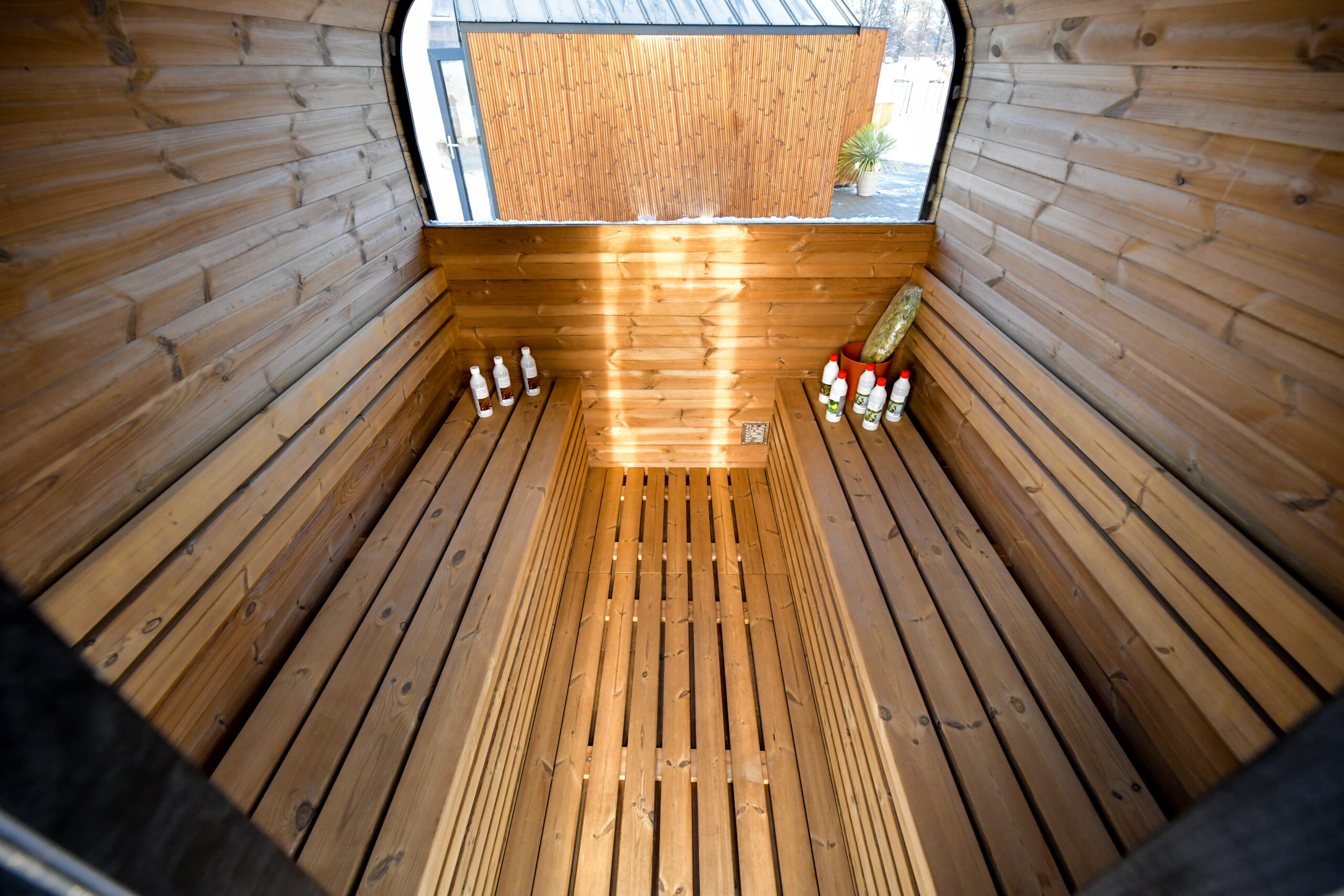 Sauna jest dostarczana w całości.
