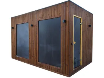Sauna SKAVA została zbudowana z trwałego drewna termowanego, które świetnie radzi sobie z warunkami zewnętrznymi. Duże drzwi ze szkła hartowanego o grubości 8 mm nie tylko dobrze wyglądają, ale też są bezpieczne i odporne na uszkodzenia. To model stworzony z myślą o użytkowaniu przez cały rok.
